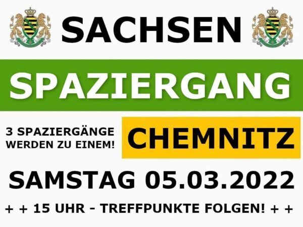 Gemeinsam gegen den Coronawahnsinn: Am Samstag findet in Chemnitz ein großer Spaziergang um den Innenstadt-Ring statt, der bereits von vielen Initiativen unterstützt wird. Drei Spaziergänge werden sich auf dem Ring zu einem großen Spaziergang vereinen!
